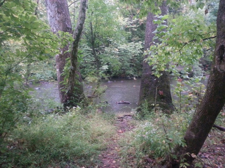 The Perkiomen Creek was rolling past, a little high with the rain. The sound of the rapids put me to sleep. Really nice spot.