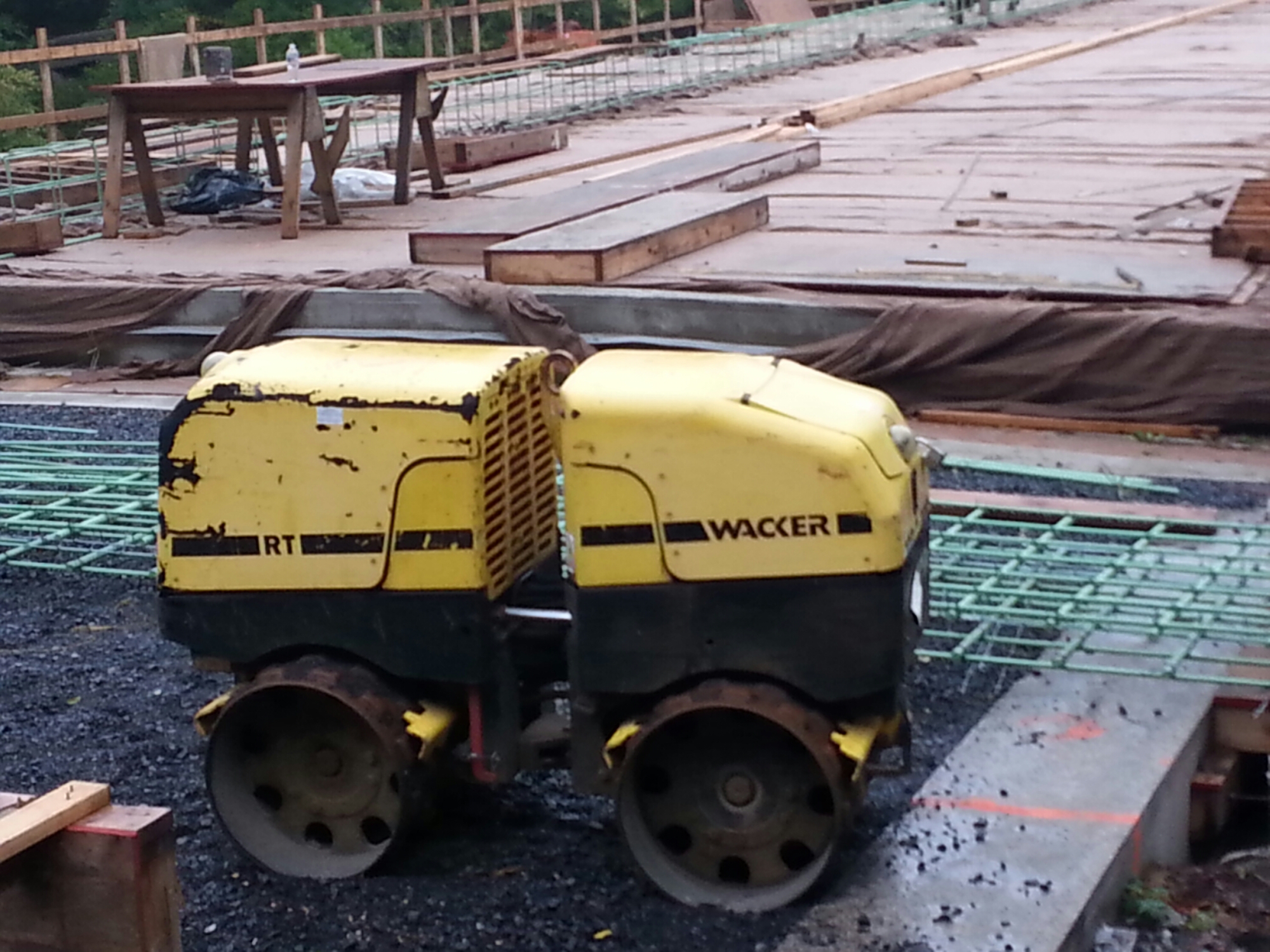 THIS is a tamping machine. A roller actually but the company “Wacker” makes a power tamper with a handle like a lawn mower. It realy wacks. An old friend of mine once rented one and it got out of control. He couldn’t find the kill switch! He tamped all kids of stuff. Hysterical it was, the story, especially when he told it. Steve Whitten.