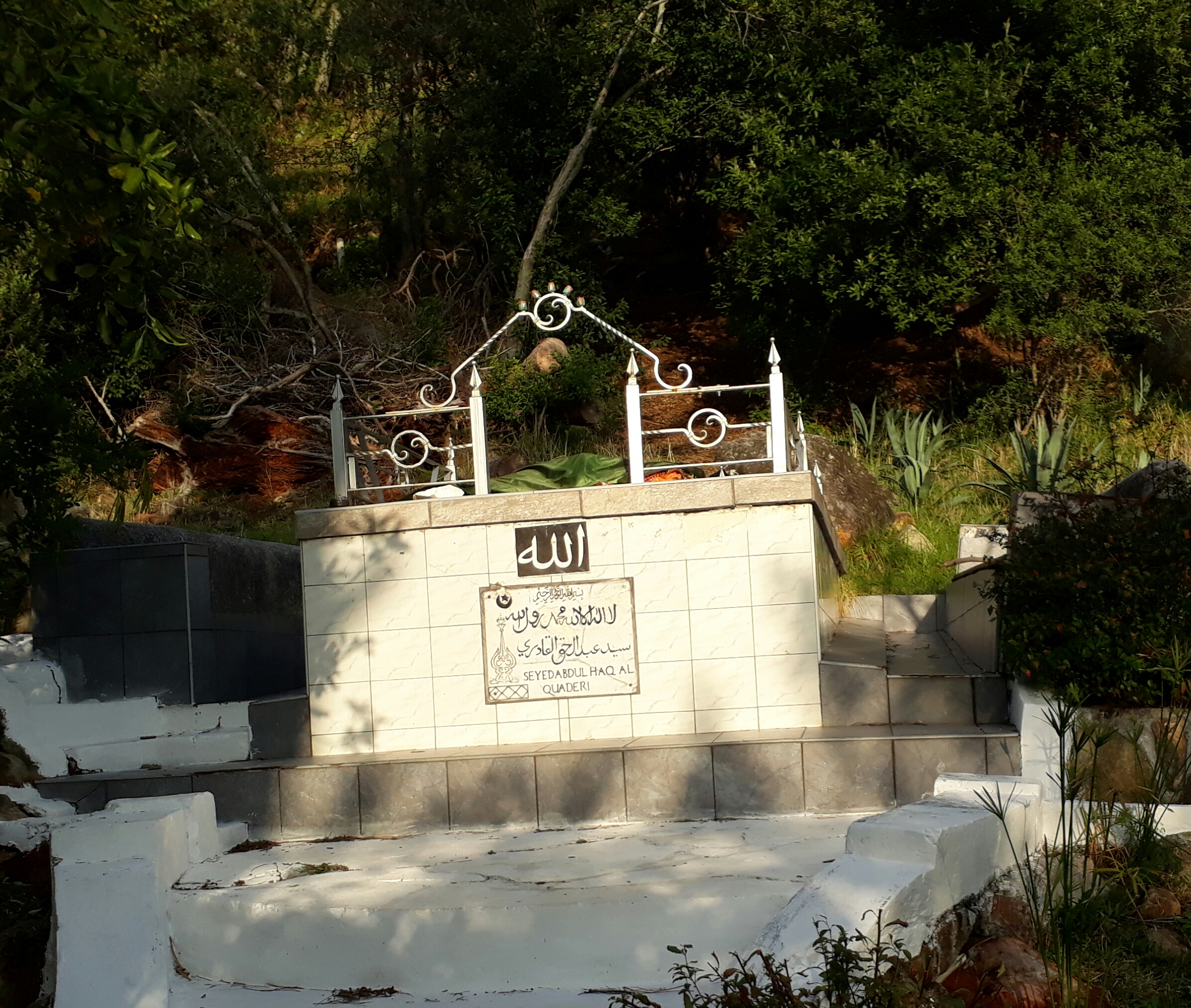 Below is a Muslim grave called a Kramat. Usually left as a sign of great respect, for a spiritual leader or noble person. After death, they were named as Saints. People go to these sites to pray. They are all over the mountains here. Many of these memorialized people were brought here as slaves.